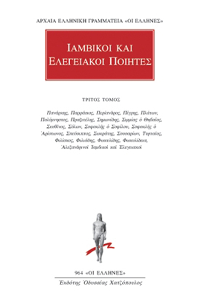 Στον τόμο αυτόν συμπεριλαμβάνονται: α) τα ιαμβικά αποσπάσματα του Σημωνίδη του Αμοργίνου, ποιητή του 7ου αι. π.Χ., προερχόμενα κυρίως από τον «Ίαμβο γυναικών», έναν ψόγο των γυναικών όπου παρουσιάζονται 9 χαρακτηριστικοί τύποι γυναικών και παρομοιάζονται με ισάριθμα ζώα· β) τα αποσπάσματα από το έργο του Τυρταίου, ποιητή του 7ου αι. π.Χ., ενός από τους σημαντικότερους εκπροσώπους της πολεμικής-συμβουλευτικής αλλά και της πολιτικής ελεγείας· γ) τα σωζόμενα αποσπάσματα από το ποιητικό έργο του Σόλωνα, του γνωστού Αθηναίου νομοθέτη, ο οποίος μέσω των ποιημάτων του προσπάθησε να δικαιολογήσει τις πολιτικές του επιλογές· δ) τα σωζόμενα αποσπάσματα από τη γνωμική ελεγειακή ποίηση που αποδίδεται στον Φωκυλίδη, σπουδαίο ποιητή του 6ου αι. π.Χ.· ε) τα ιαμβικά και ελεγειακά αποσπάσματα συγγραφέων όπως οι Πανάρκης, Παρράσιος, Περίανδρος, Πίγρης, Πλάτων, Πολύμνηστος, Πραξιτέλης, Σιμμίας ο Θηβαίος, Σκυθίνος, Σοφοκλής ο Σοφίλου, Σοφοκλής ο Αρίστωνος, Σπεύσιππος, Σωκράτης, Σουσαρίων, Φιλίσκος, Φιλιάδης, μαζί με μαρτυρίες για τον βίο τους· στ) τα σωζόμενα ελεγειακά και ιαμβικά αποσπάσματα ποιητών της Αλεξανδρινής εποχής όπως οι Βούτας, Σιμύλος, Σωτάδης, Ηδύλη, Φιλητάς, Ερμησιάναξ, Ριανός, Μοιρώ, Ευφορίων, Φανοκλής, Αλέξανδρος ο Αιτωλός, Άρατος, Φιλοστέφανος, Ανακρέων ο νεότερος, Αρχέλαος, Πτολεμαίος ο Ευεργέτης, Αγάθυλλος, Ερατοσθένης, Νίκανδρος.