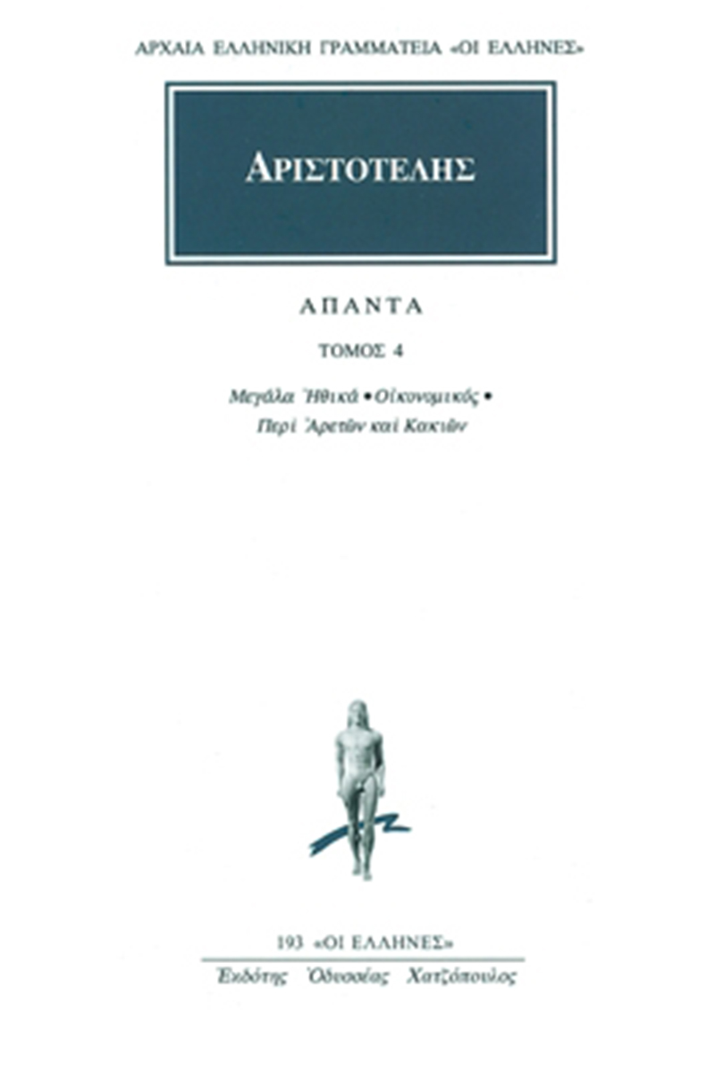 Ο τόμος Ηθικά Μεγάλα, Οικονομικός, Περί αρετών και κακιών περιλαμβάνει το αρχαίο πρωτότυπο κείμενο, απόδοση στη νεοελληνική, εισαγωγή καθώς και ερμηνευτικά σχόλια, που καθιστούν τον τόμο προσιτό τόσο στον μελετητή όσο και στον ευρύτερο αναγνώστη.