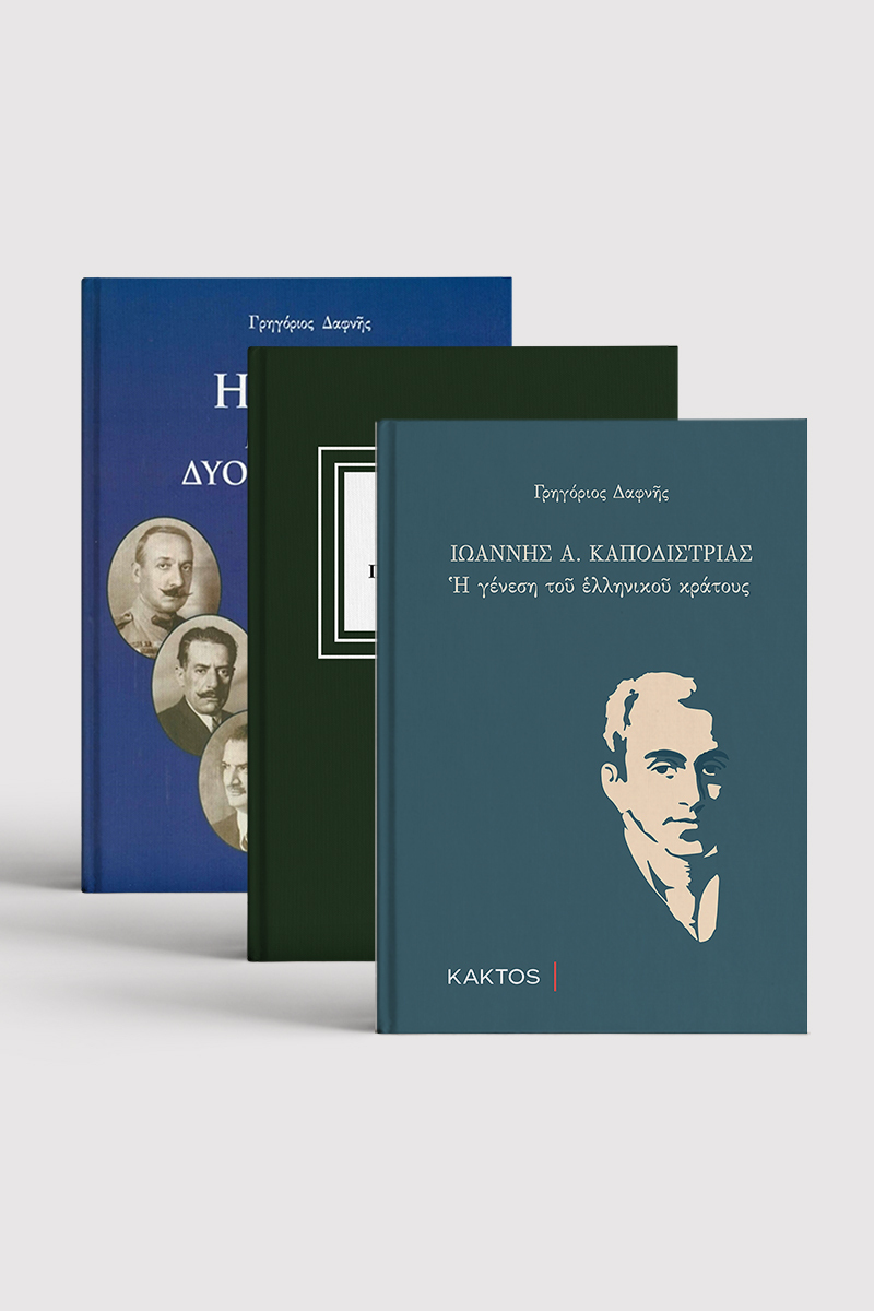 Ιωάννης Α. Καποδίστριας: Η γένεση του ελληνικού κράτους. Από τα παιδικά χρόνια του ως τη δολοφονία του στο Ναύπλιο, ο Γρηγόριος Δαφνής παρουσιάζει μια από τις πλέον έγκριτες βιογραφίες του Ιωάννη Καποδίστρια, αναζητώντας τους παράγοντες που διαμόρφωσαν την προσωπικότητά του και την πολιτική του πορεία.