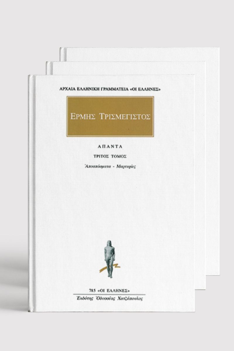 - Αποσπάσματα – Μαρτυρίες: Συλλογή ερμητικών κειμένων και παραδόσεων, από τον Στοβαίο και άλλες πηγές, που διασώζουν την ουσία και το πνεύμα του ερμητισμού, προσφέροντας ολοκληρωμένη κατανόηση των διδασκαλιών του Τρισμέγιστου.